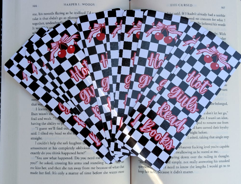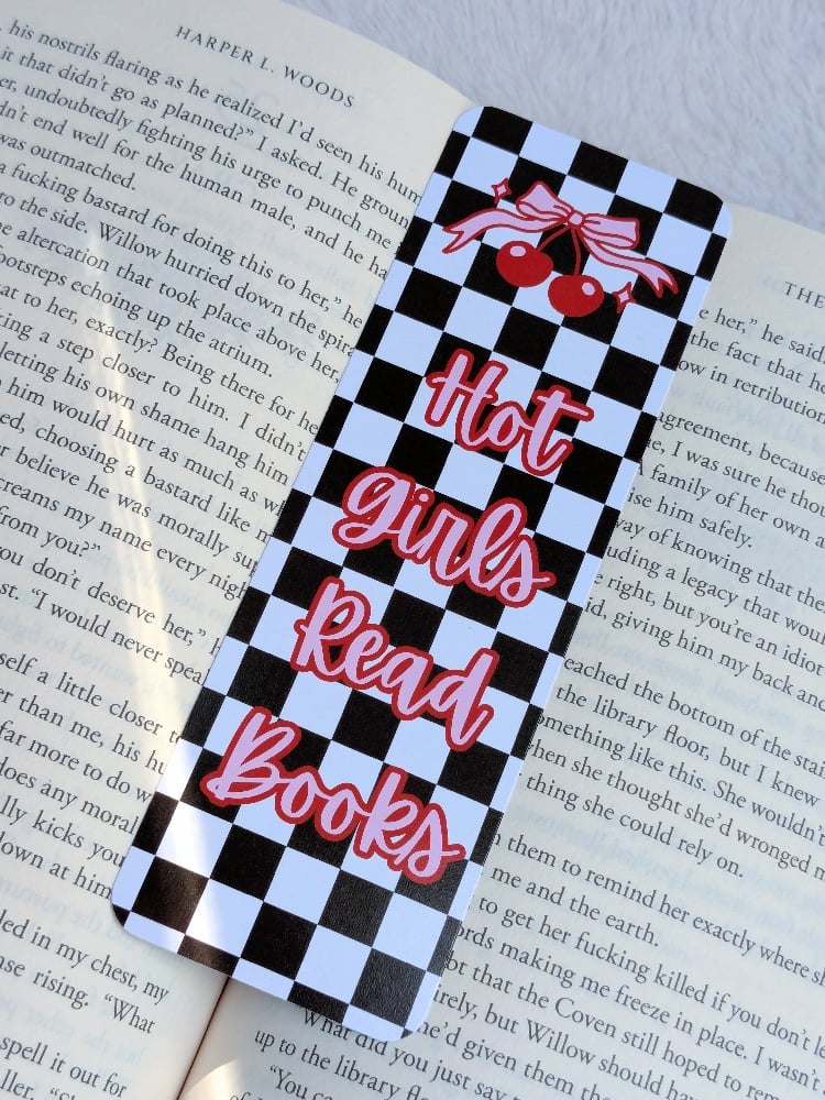Add some fun and flair to your reading with this bold, checkered bookmark! Featuring a playful “Hot Girls Read Books” design with bright red lettering and a cute cherry accent, this bookmark is perfect for keeping your spot in style. Durable and lightweight, it’s ideal for any book lover who wants to show off their love for reading. A great gift for yourself or a fellow bookworm!